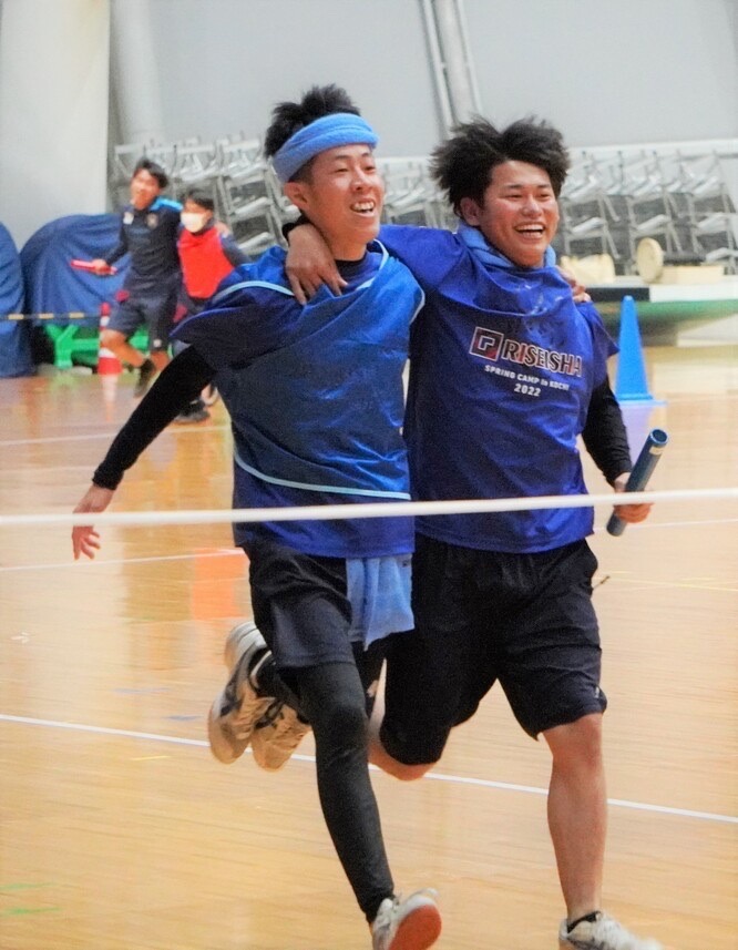 ダントツの1位でゴールテープを切り、アンカーの照井を最後に全員で胴上げ。