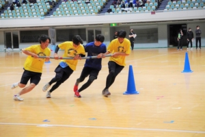 前半最後の種目、綱引きではパワーで圧倒、決勝で惜しくも敗れますが2位を獲得。前半を終えて上位につけます。