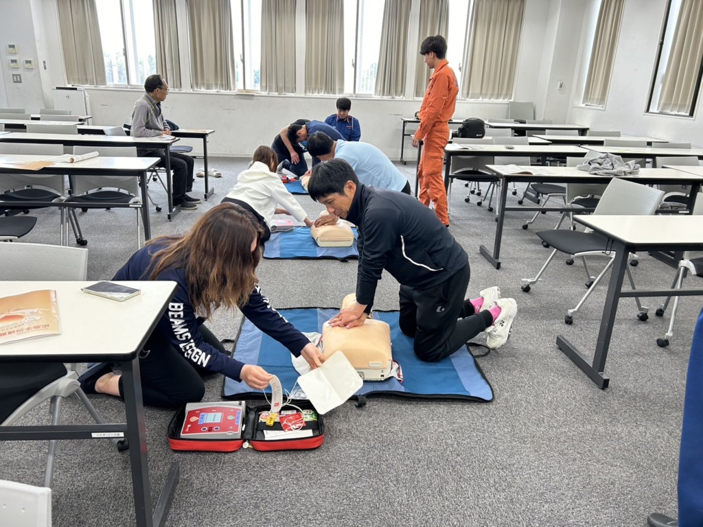 2024.04.24 AED講習会🖊 4/23(水)は 北大阪校教員のAED講習会でした。 箕面消防署の方に来ていただき 説明、実際に心配蘇生のやり方などを教えていただきました。 練習とわかっていても緊張感があったので 実際現場に居合わせると冷静に判断するのは とても難しいことだと感じました。 実際救急車が到着するまでの平均時間は7~8分 その間心配蘇生をし続けなければなりません 実際に体験しましたがとても大変でした。 とても大事なことを学べました 前の記事 記事一覧 次の記事