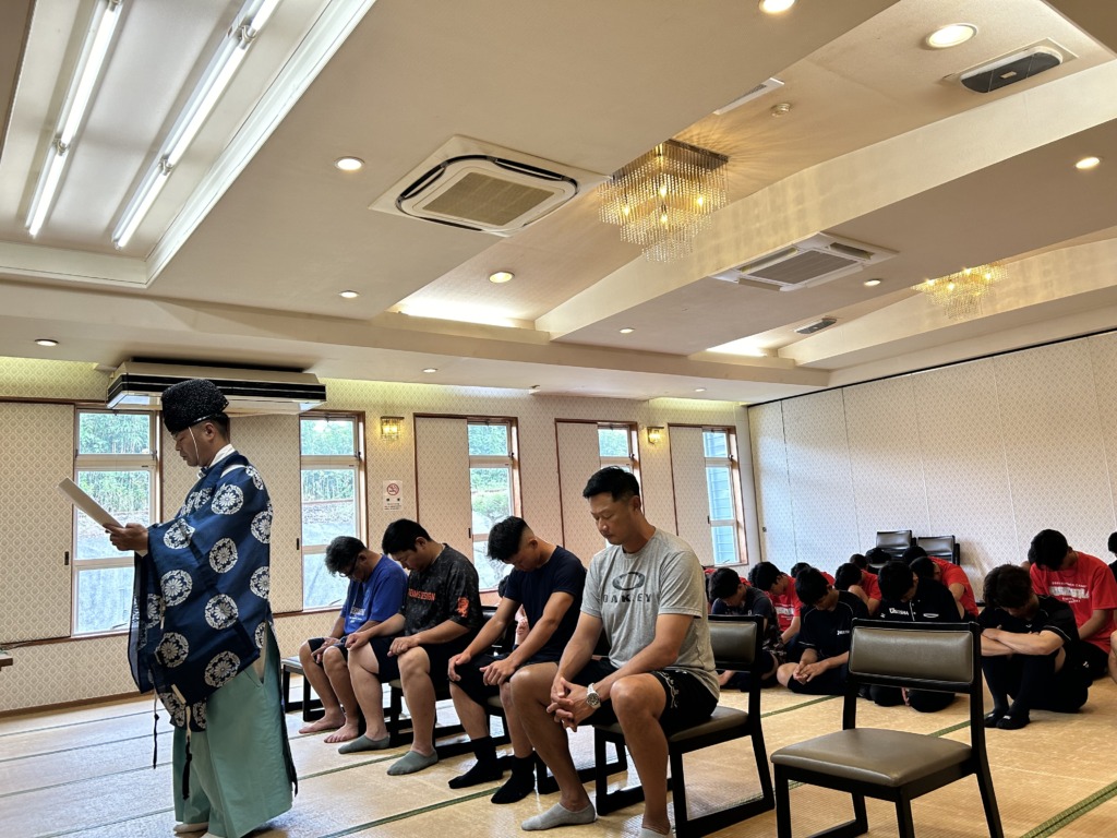 2024.08.18 宮崎キャンプスタート!! 8.18(日)は 宮崎キャンプ初日です。 履正社スポーツ専門学校(企業チーム)がキャンプを行っています。 初日は朝一の飛行機で出発し、ホテルに13時頃到着しました。 ホテルの方が必勝祈願にと串間神社⛩️の方を呼んでくださり 9月に行われる日本選手権に向けて神事をしていただきました。 学生も気合いが入ったところでグラウンドへ向かい軽く身体を動かしました。 明日から本格的にキャンプスタートです。 前の記事 記事一覧 次の記事