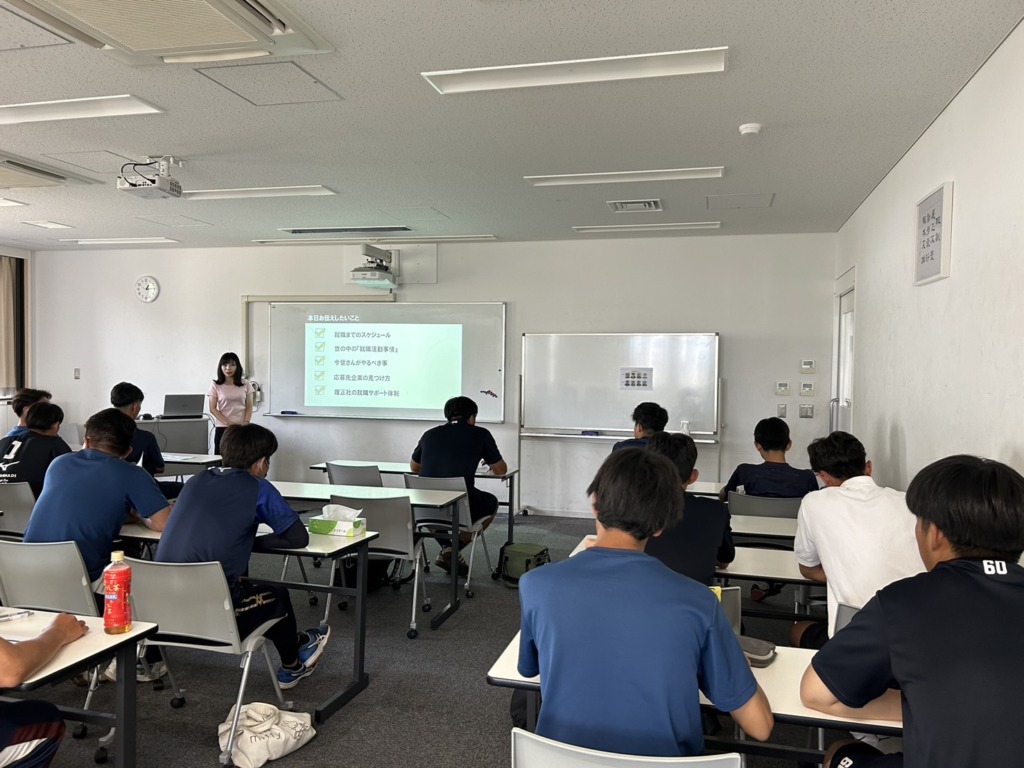 箕面キャンパスで一年生に向けた就職説明会を行ってくださいました。