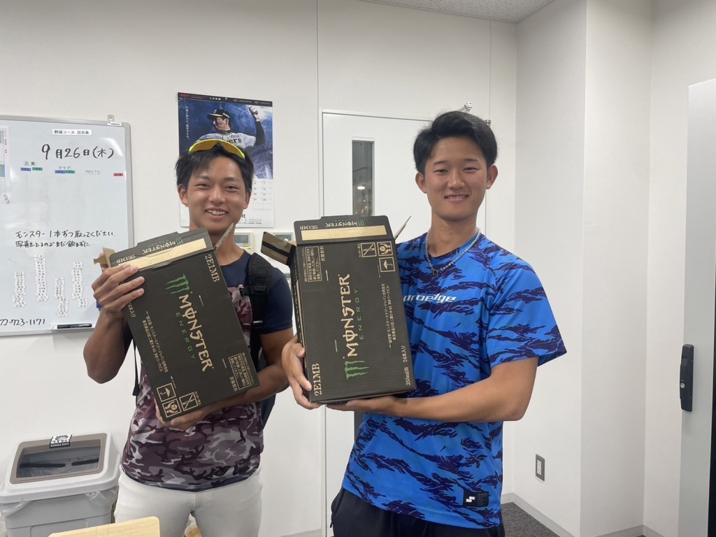 2024.09.26 モンスター!!!! 9/26(木) 本日は写真DAY📷 モンスターさんから学生にモンスターを一本ずついただきました。 モンスターを飲んでエネルギーチャージ!!! 練習は履正社スポーツ専門学校(企業チーム)がノックをし 履正社ベースボールクラブ(クラブチーム)がゲームノックをし バッティングを行いました。 20球連ティーを何セットも行い 学生たちもとてもやり切った表情でした。 きつい練習ほど楽しい!!と叫んでいました。 前の記事 記事一覧 次の記事