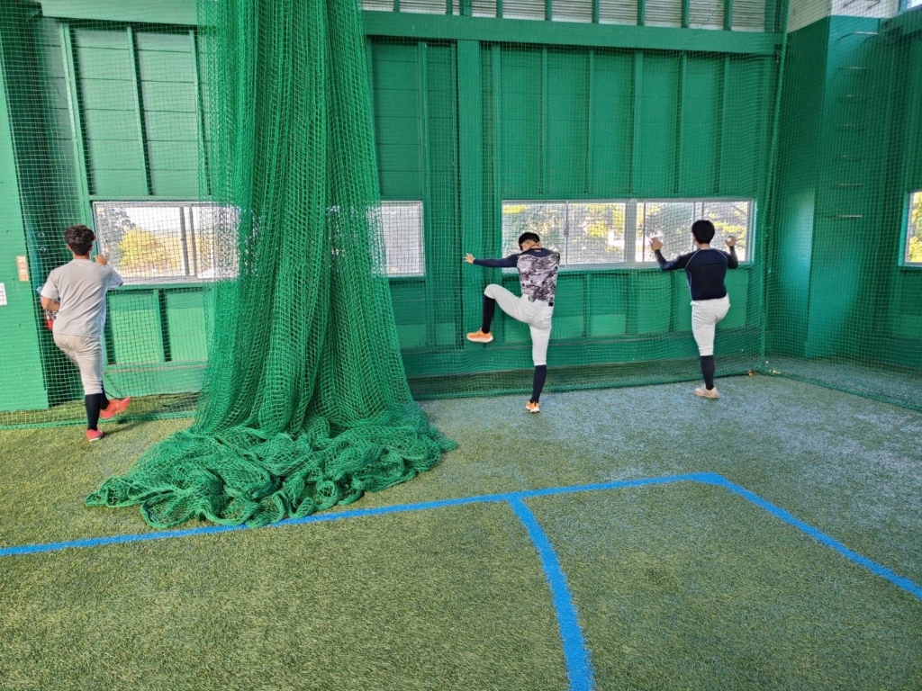 一方で投手陣はブルペンに入り、ラプソードを用いた投球分析とコーチからの専門的な指導を受けました。データと実技を組み合わせることで、より質の高い投球を目指す取り組みが進んでいます。