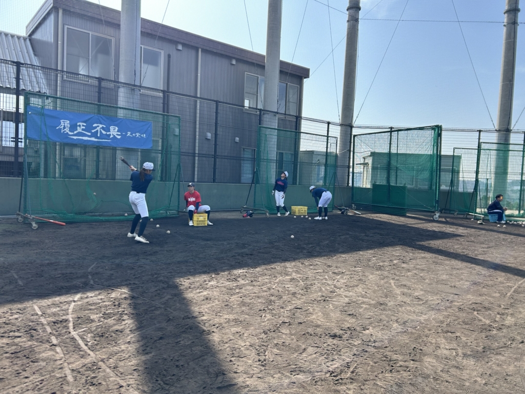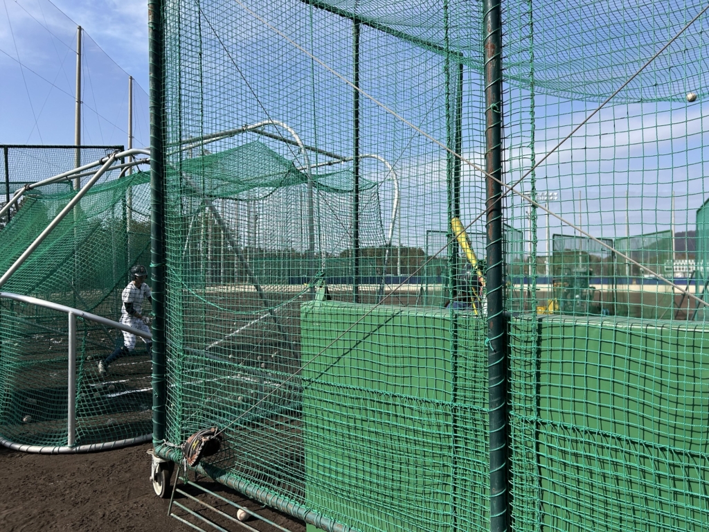 その後グラウンドでは野球を続ける2年生と女子で3か所バッティングを行いました