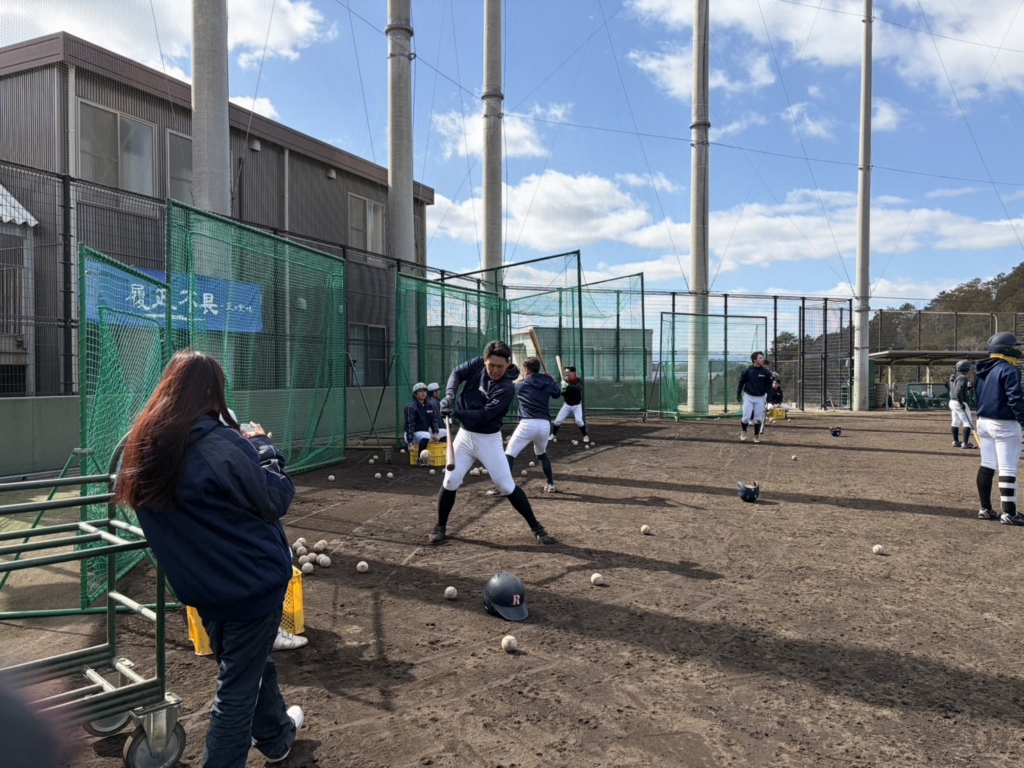 2026.02.19 振り続ける冬!! 2/19(木) 今日は朝からシートノックを行い、その後は打撃練習に取り組みました! まずは1か所でバッティングを行い、そこから連T、さらに3か所に分かれて打ち込みを実施 練習を通してしっかりとバットを振り込むことができ、寒い中でも集中した雰囲気で取り組めていました また、シートノックでは1年生マネージャーの榎が2年生マネージャー木村と一緒に外野ノックを担当 グラウンド全体の雰囲気も良く、チーム全員で練習を作り上げる姿が印象的でした 寒さに負けず、今日も内容の濃い練習となりました!! 前の記事 記事一覧 次の記事