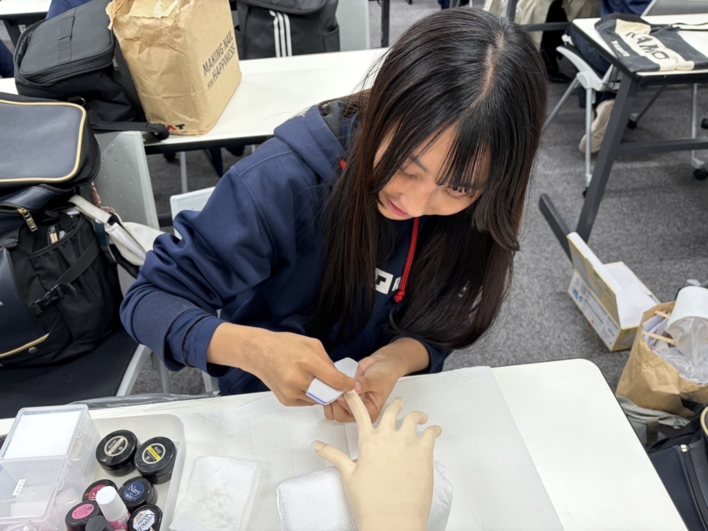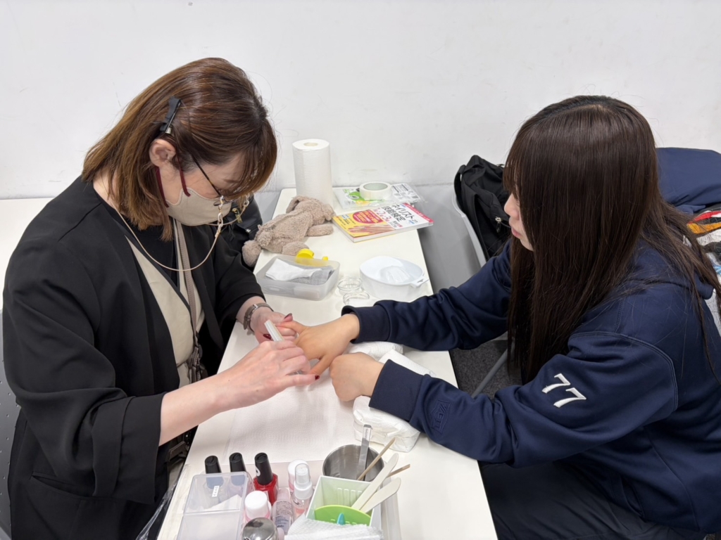 また、女子マネージャーは毎週木曜日のネイル授業を受講しました