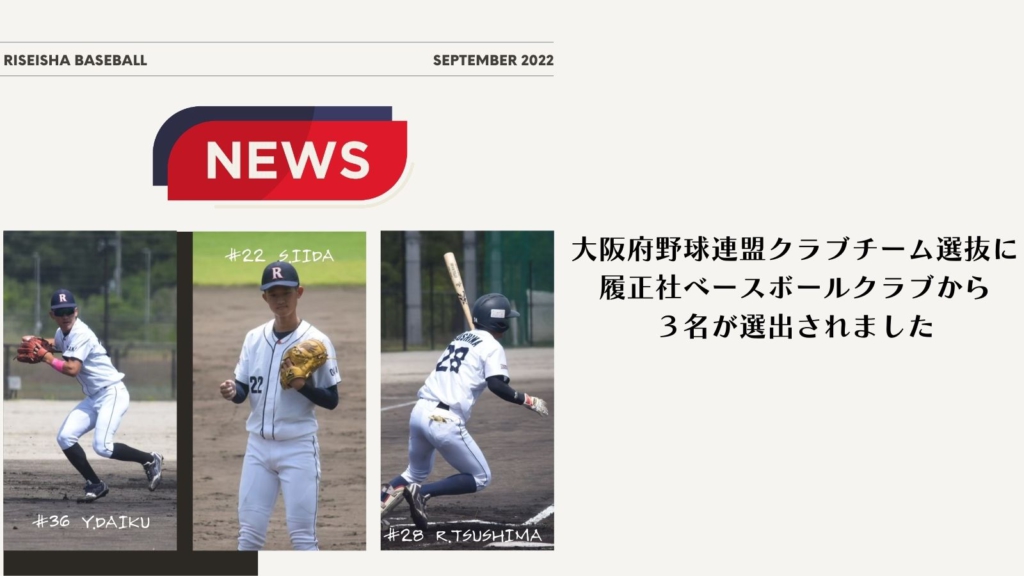 大阪府野球連盟クラブチーム選抜に3名が選ばれました!!