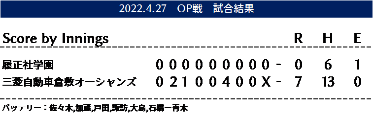 JABA徳山大会 一回戦 vs福山ローズファイターズ