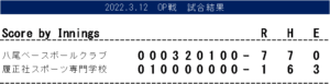 OP戦 vs八尾ベースボールクラブ