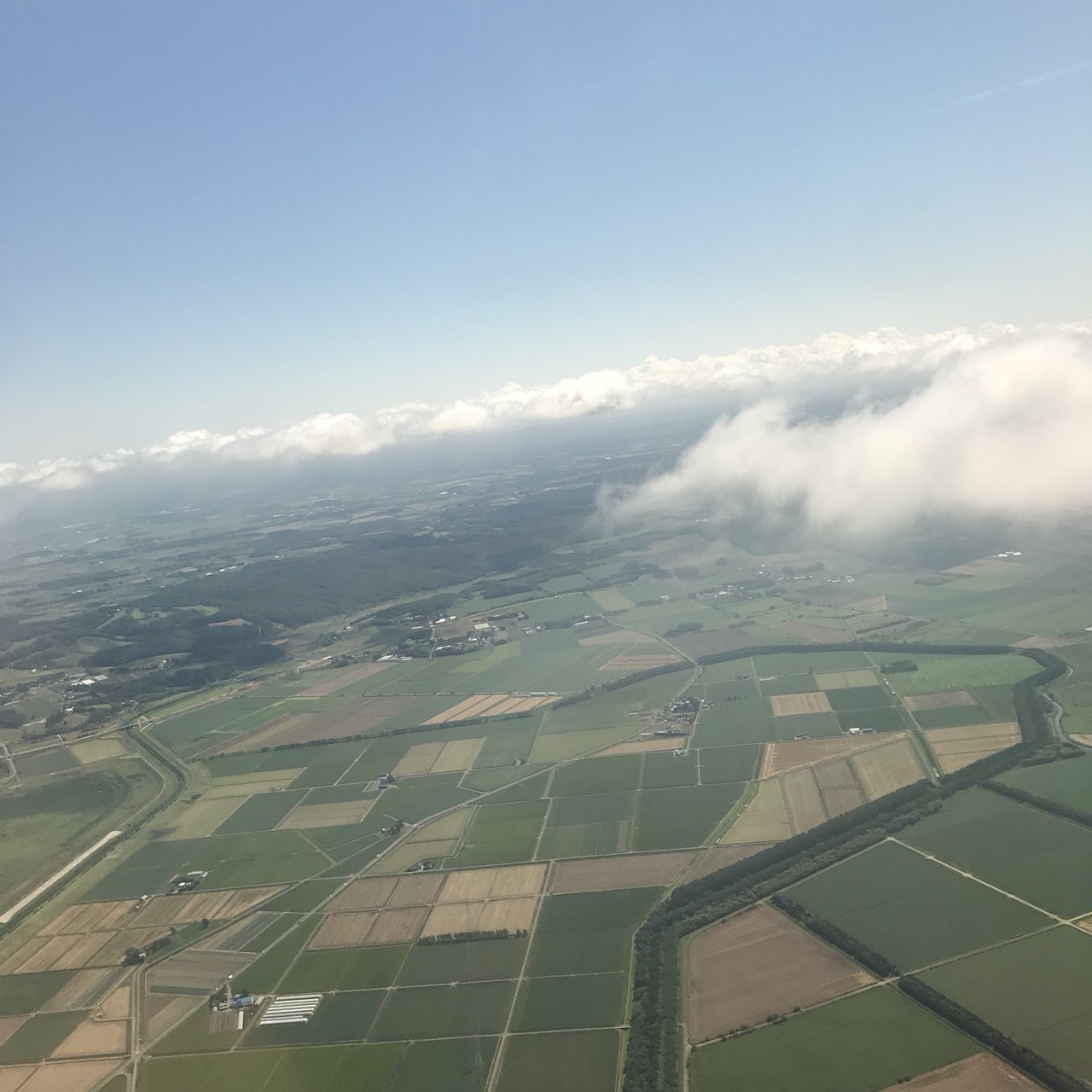 空から見える緑豊かな北海道を眺めながら無事に到着しました!