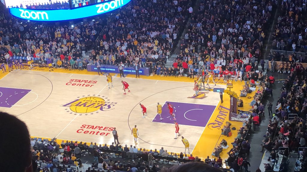 19時〜はNBA観戦をロサンゼルスの象徴とも言えるステイプルズセンター にて