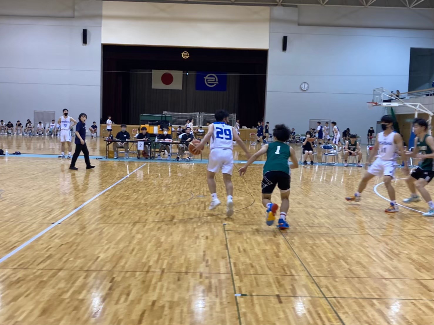 前半相手のオフェンススキルに対応出来ず、離される場面がありました。ハーフタイムでは自分たちのやること、相手の止めなければいけない所を確認しました。