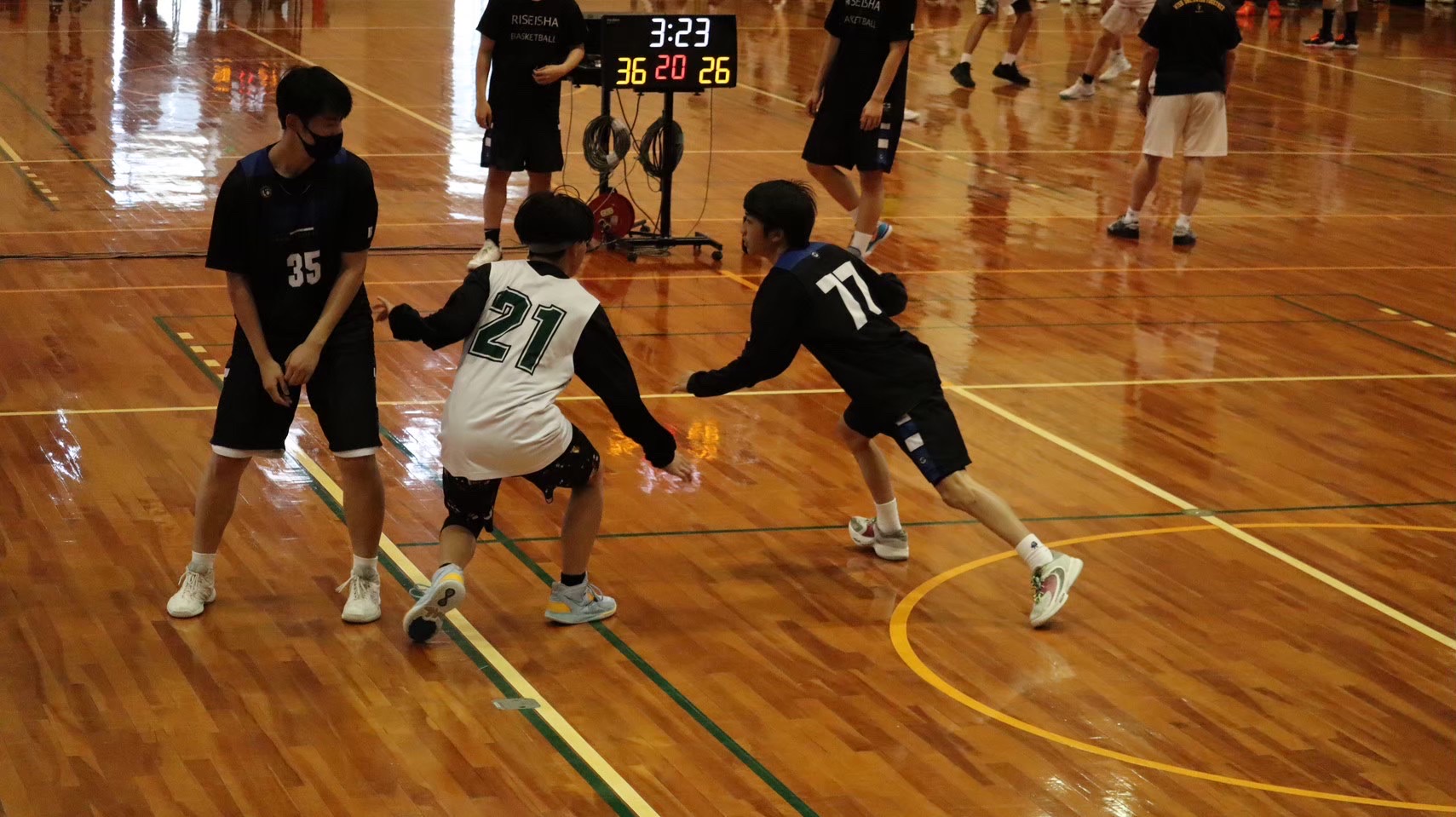 ハーフコートでディフェンスの声かけが出来ていない部分があり、コミュニケーションミスでゴール下への合わせがあったので改善点だと思いました。