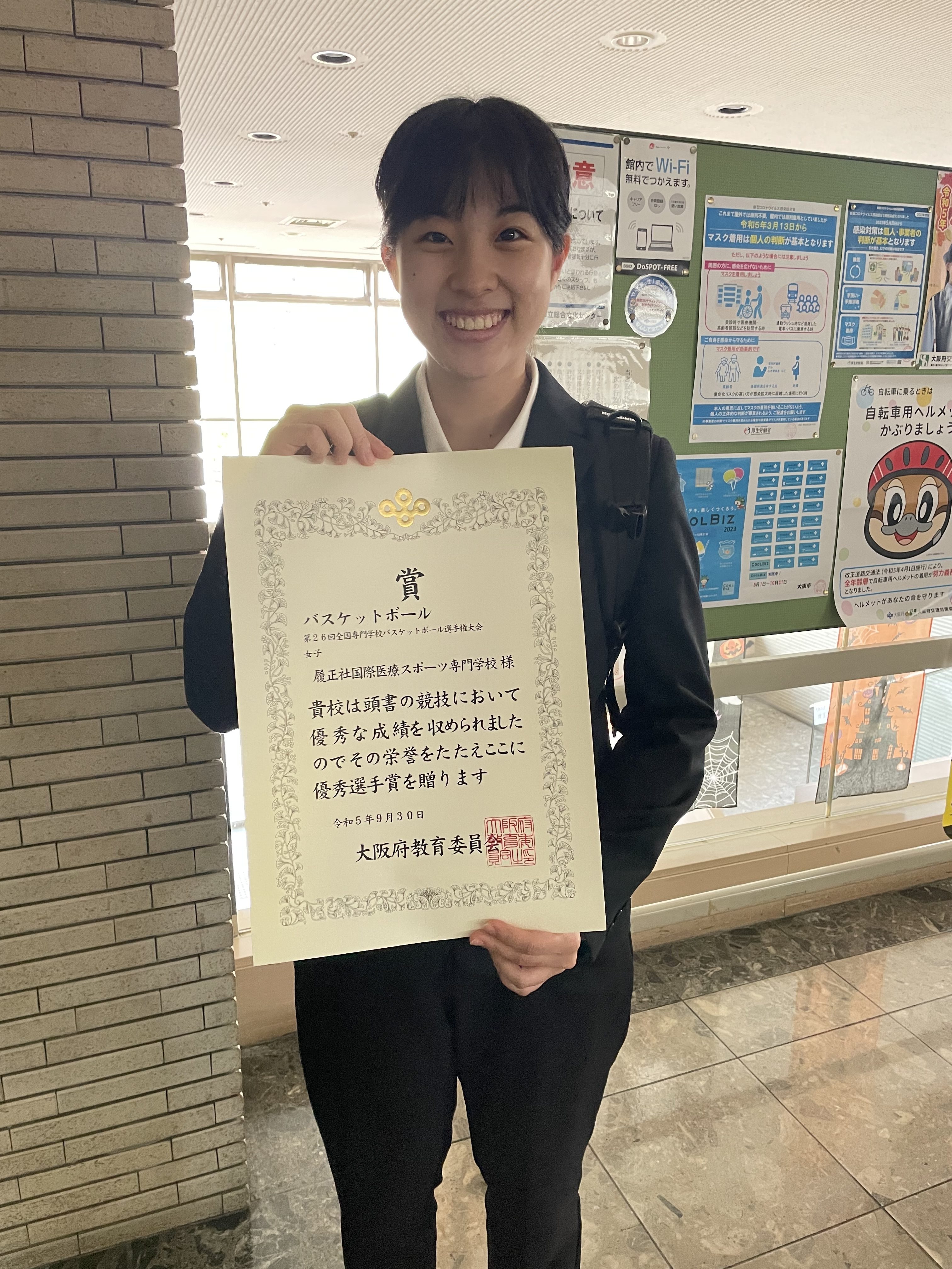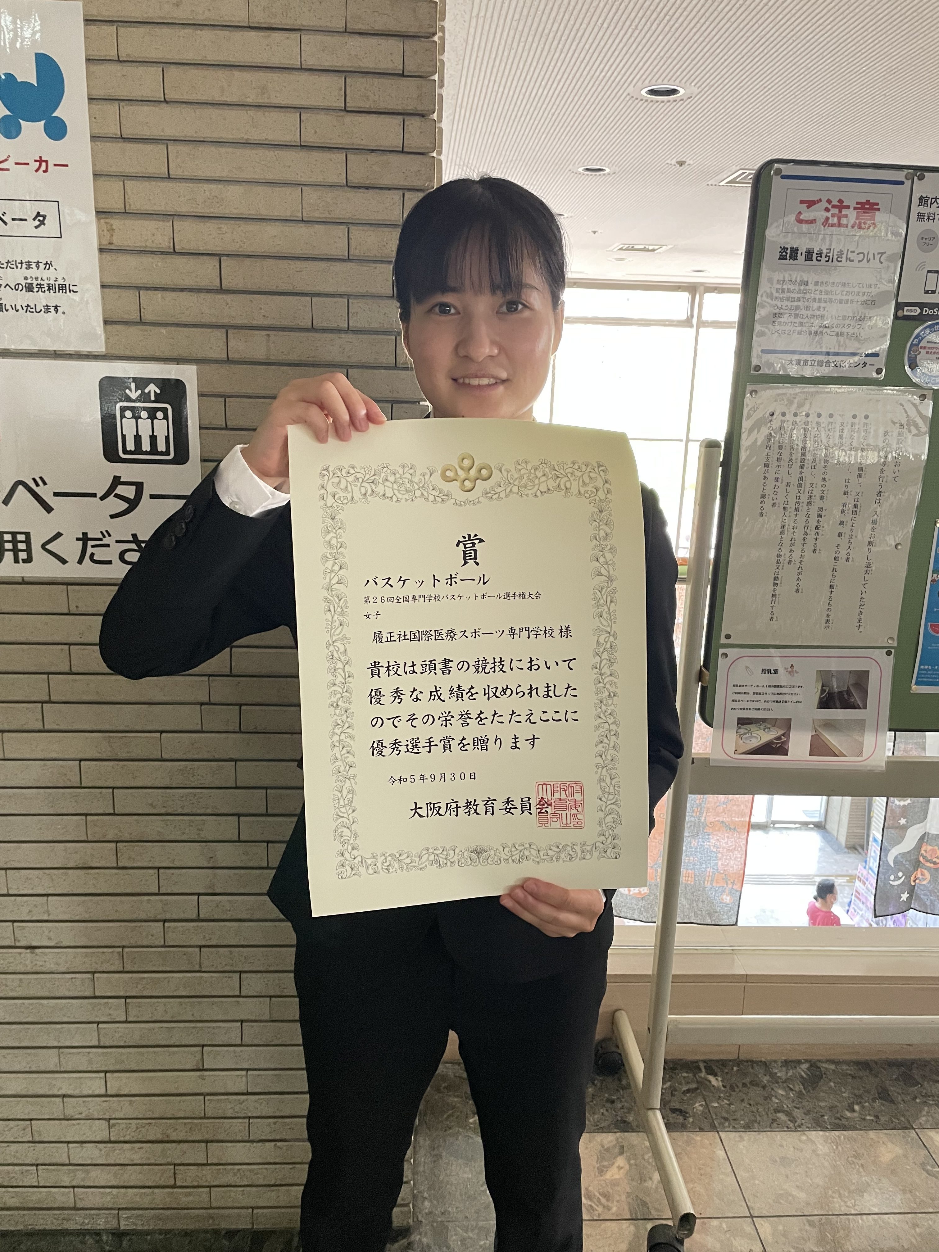 2023.10.09 [女子] 大阪スポーツ賞贈呈式 9月30日(土) サーティホール(大東市立文化ホール)で行われた 令和5年度大阪スポーツ賞贈呈式に参列しました! 女子バスケットボールコースからは キャプテンのライと1年生のハナが代表して参列しました。 大阪府教育委員会より、全国専門学校バスケットボール選手権大会の女子の部 優勝を祝し、優秀選手賞をいただきました! 名誉ある貴重な経験ができてよかったです! 前の記事 記事一覧 次の記事