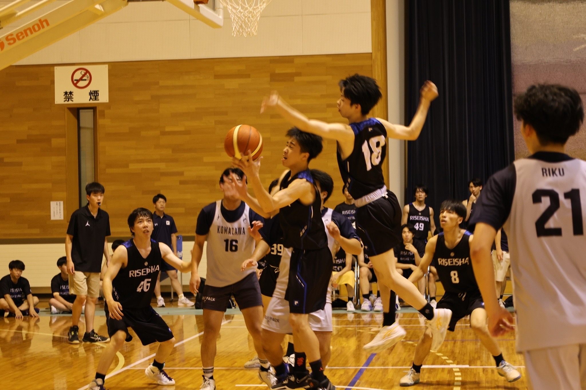 試合全体を通して、試合に出ている5人がディフェンスの時には声を出してビックマンへの意識を持ちつつ、しっかりとリバウンドを取るが出来ていて良かったと思います。