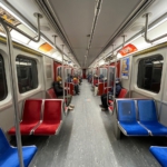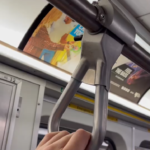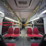 降車ボタンを押すか窓側についているこの紐(赤で印している箇所)を引っ張ると降車リクエストが出来ます。