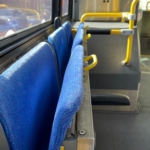 バスでは優先座席を畳んでいる時もあります。レバーを引っ張ると座席を使うことが出来ます。