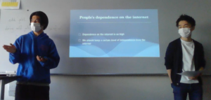 グループに分かれた学生は、トピックを決定、リサーチ、そして1人約5分、計10分のプレゼンをしました。