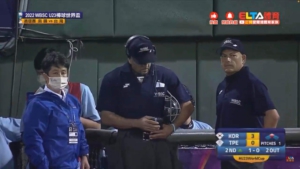 ↓この写真は、10数年前に私のチームに短期留学生として来ていた陳選手がテレビでコーチ見た!と送ってくれました(韓国vs台湾戦でのチャレンジの際の様子です)