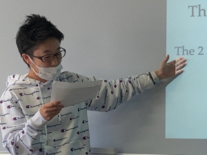 ジャレット先生の2年生Speaking and Presentation の授業では、どのように英語でプレゼンをするかを学びます。