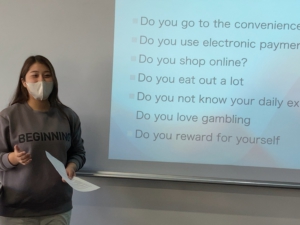 私はお金の貯め方についてプレゼンしました。