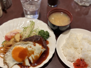 ランチは、日替わりランチ(ハンバーグ定食)693円(税込)