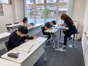 2023.11.03 放課後の様子 今日は、学生たちがどのように放課後を過ごしているのかをご紹介します。 まずは、1階職員室前より。 先生とマンツーマンでフリートークをしています。 1対1で英語を話す練習です。 続いて3階の2年生の教室に行きました。 ここでは、TOEICの練習をしています。 最後に5階の自習室です。 みんな集中して勉強していました! 前の記事 記事一覧 次の記事