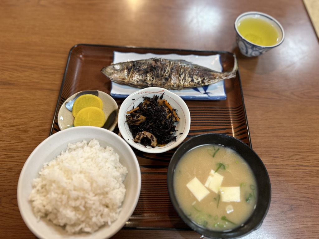 本日の定食 650円!! この日はアジの塩焼きでしたよ♪ ご飯も大盛でした!