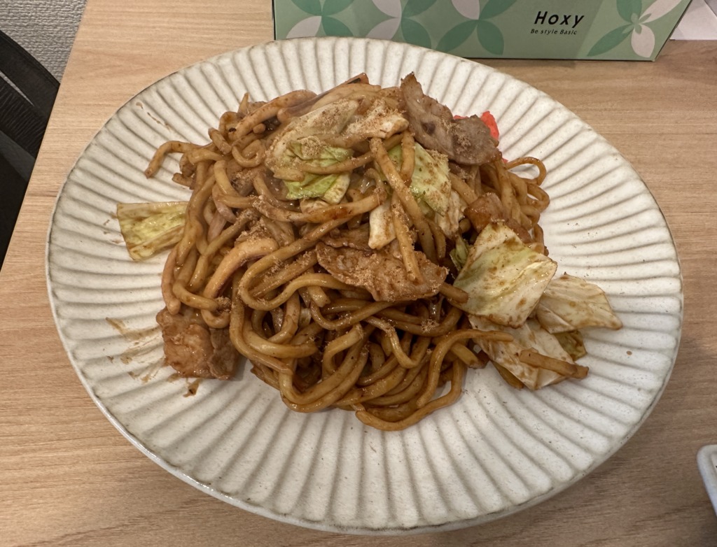 その後、ソース焼きそばの豚イカミックス500円をいただきました♪太麺のソース焼きそばに豚肉も存在感ばっちり!!こちらも美味でした♪