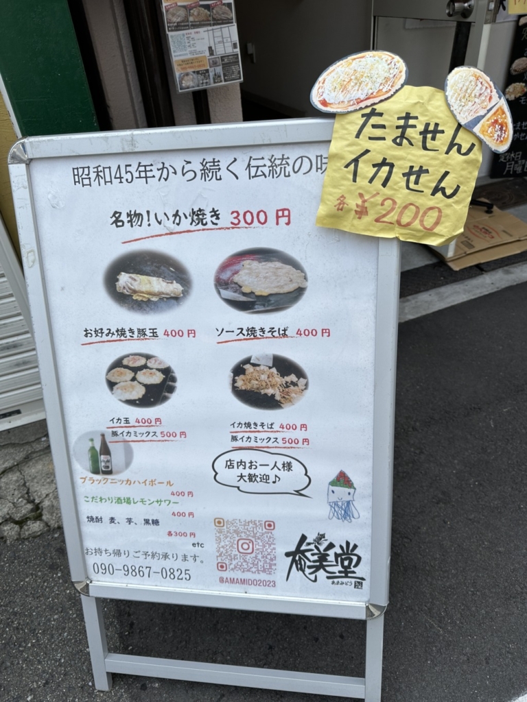 まず最初に名物のイカ焼きをいただきました♪(大阪でいうイカ焼きはイカの姿焼きではなく、粉ものの方をさす場合が多いです)もちもちとした生地にイカもたっぷり、ソースもいい感じで美味しかったです!