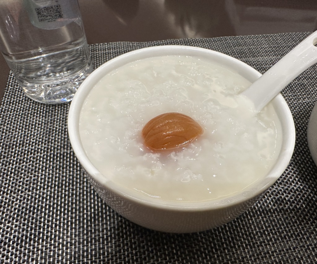 朝食にはお粥もありました!!日本から持参した梅干しを添えて☆彡