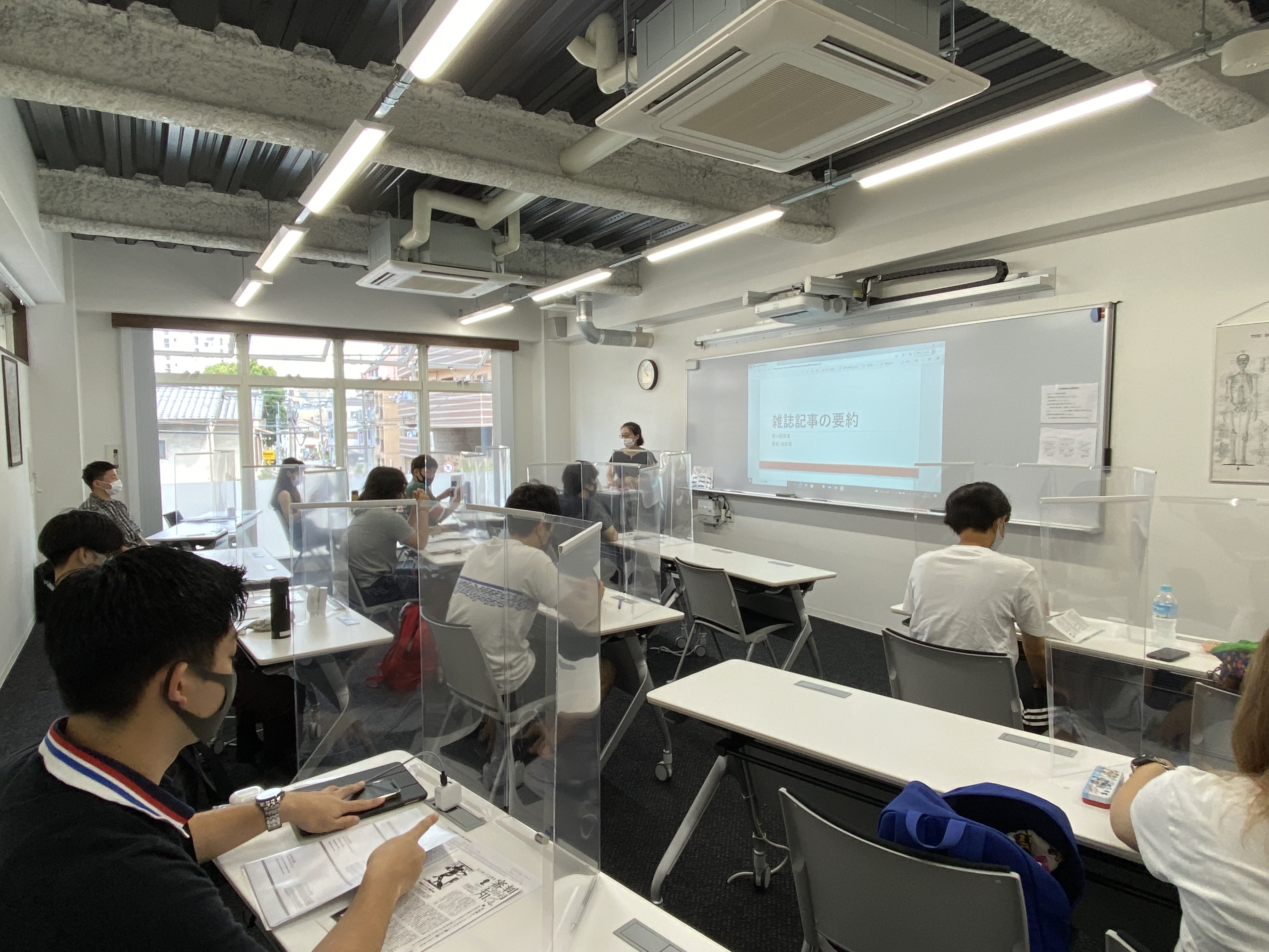 先生からのお題の記事を読み、それぞれが要約にTRY♪