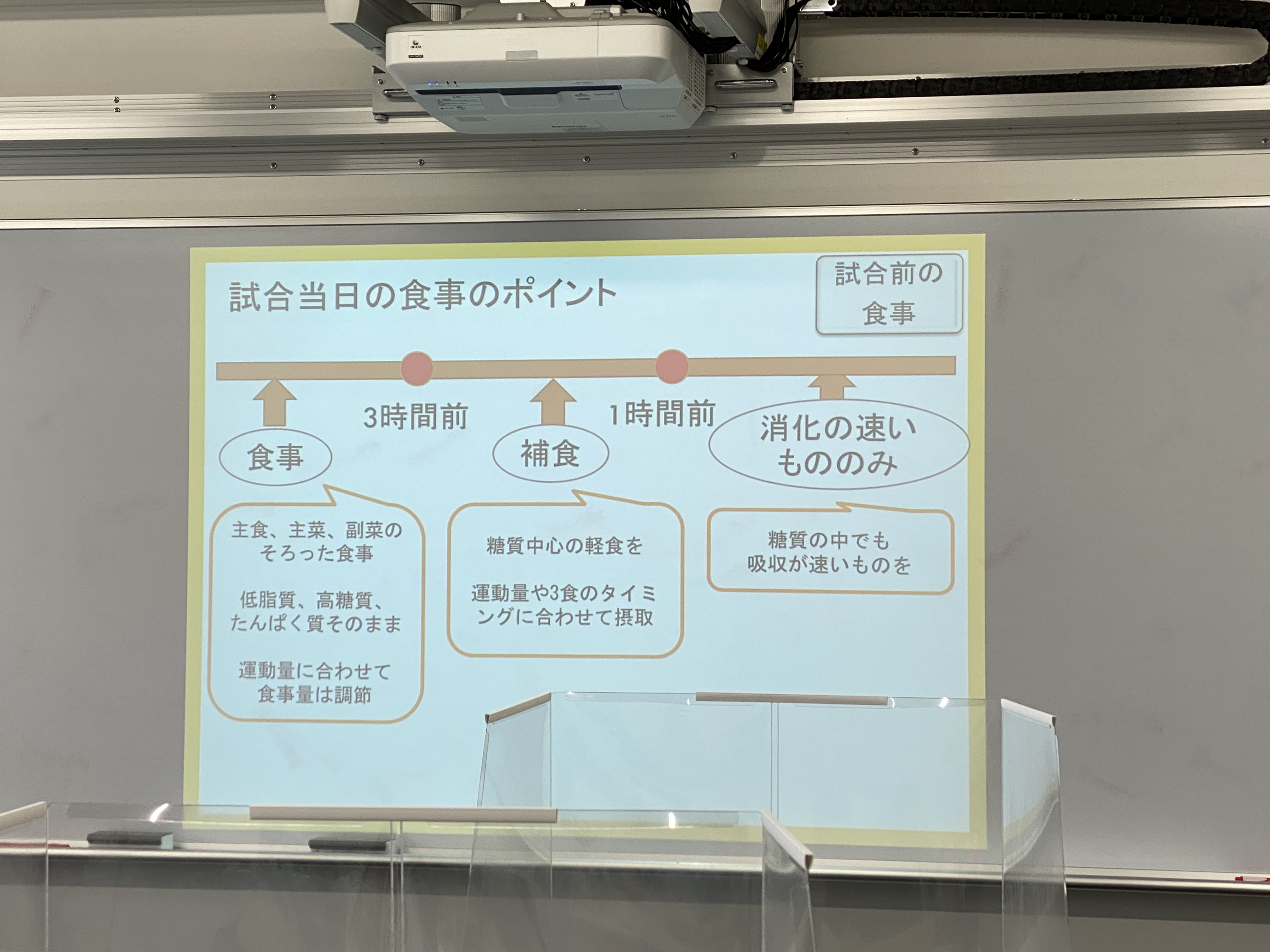 本日のスポーツ栄養学の授業は、試合前の食事についてでした☆彡
