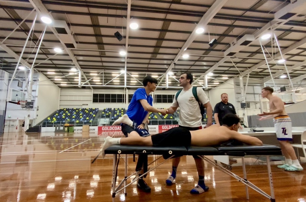 現在、オーストラリアは夏で、気温も少し高いため、選手はみんな汗だくです。そのため、選手が倒れるたびにコートが濡れてしまい、滑りやすくなってしまいます。そのような状況の中で、選手が安全にプレーできる練習環境を整えることもアスレティック・トレーナー(AT)の仕事の一つです。