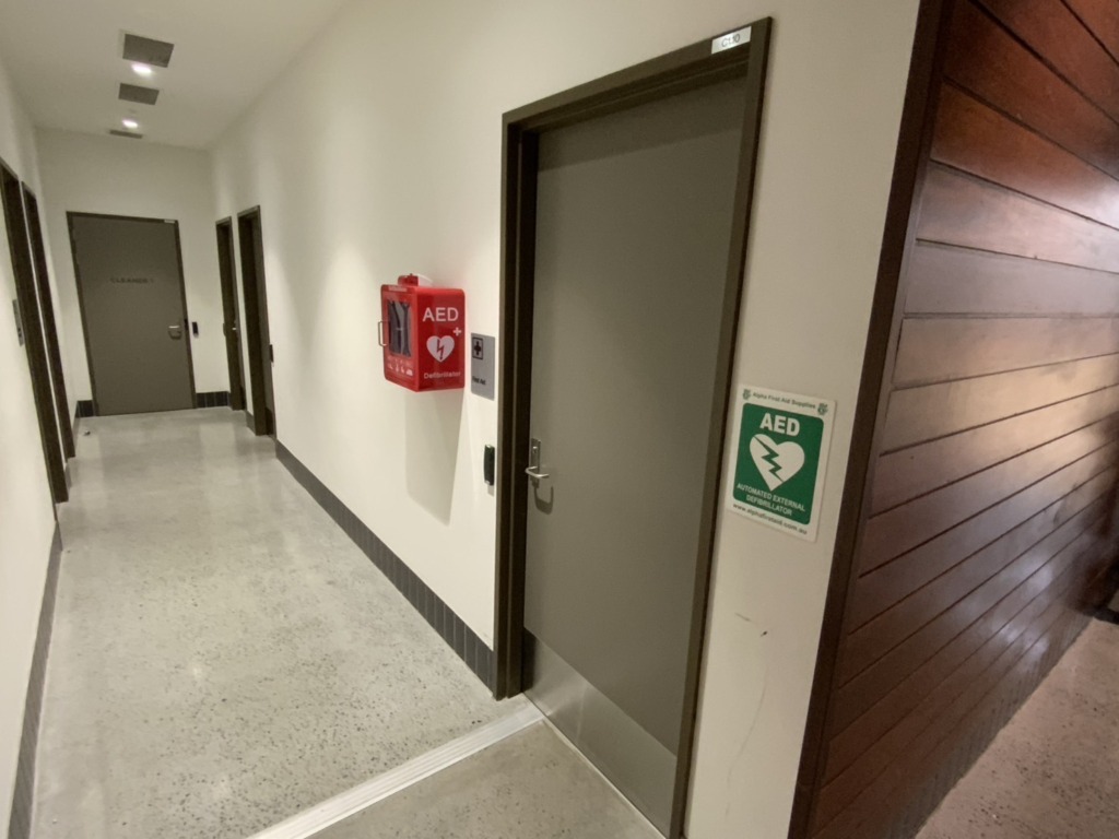 とても素晴らしい選手が集まっているチームで怪我が起こらないよう、コートが汗で濡れてしまった場合は、すぐにモップやタオルで拭くように心がけています。また、インターンが始まってからすぐにAEDの場所もチェックしました。最悪の場合に備えて、ATとして最善の処置ができるように、常に準備していたいと思います(AEDは世界共通なんだと学びました) 。