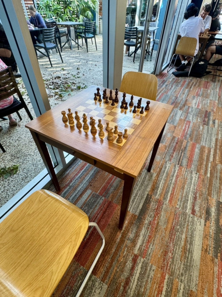 またこの図書館には、チェスの席がいくつか設置されており、ご高齢の方々がよく対戦しているのを見かけます。