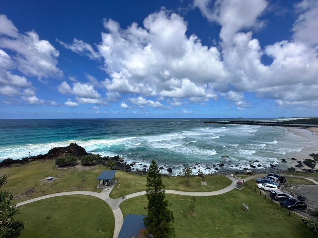ゴールドコーストの南部、クーランガッタエリアにあるカフェです。クーランガッタはゴードコーストの中でもビーチが美しい街として知られています。一見、どこにあるかわかりませんが、灯台のような建物の真下にお店があります。崖の隠れ家のような、不思議な雰囲気が漂っていました。