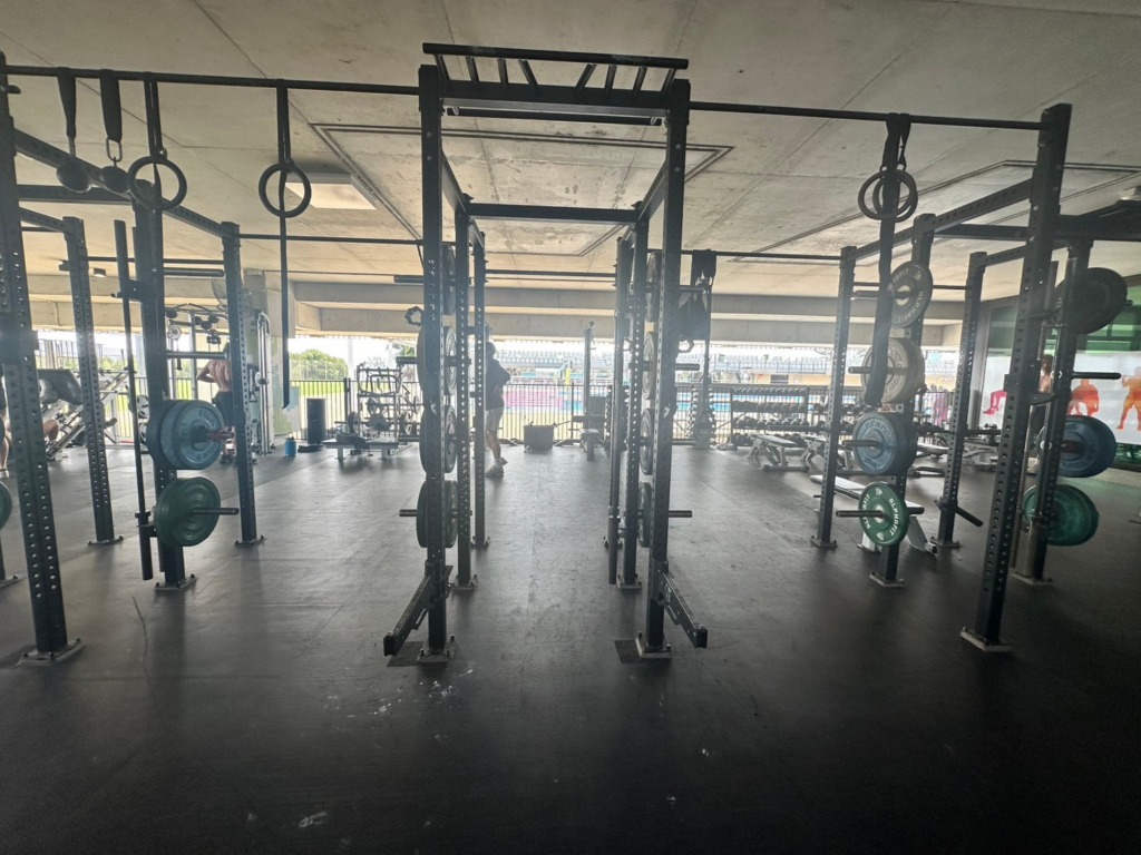 プールサイドには強化選手用のジム、そして2Fには一般用のジムと、区画が分かれた2つのジム、そしてカフェなどのスペースも常備されていて、設備に関しては圧倒的です。
