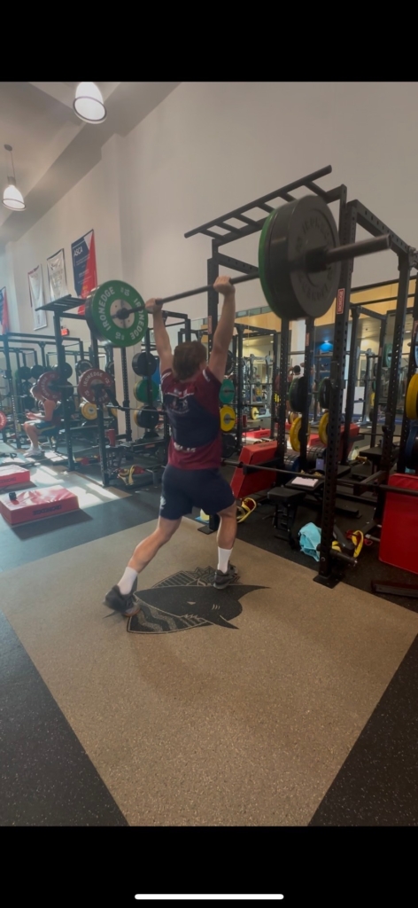 今週はチームのマックストライが行われました。マックストライでは、ベンチプレスやスクワット、パワークリーンなど種目ごとのマックス重量を測定します。その時点での自分のストレングスの強さや、チームの内での自分の位置がわかる、いつもより緊張感がある日です。