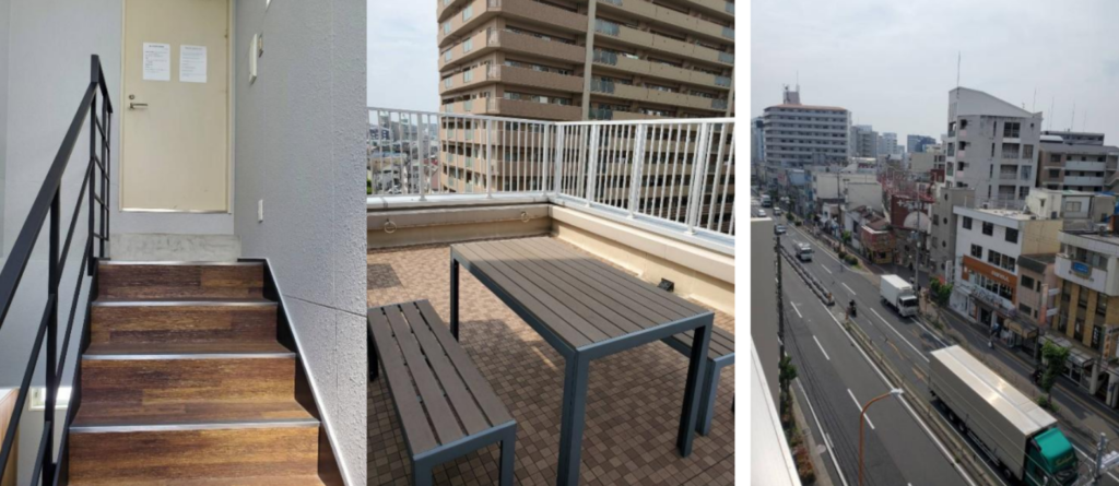 Finally, we arrive at the roof. There are tables and benches here so, on sunny days,