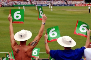 『~に決定的な打撃を与えるという』意味で、クリケットで打者が境界線を直接越える打球を打つと一挙に6点が与えられること。