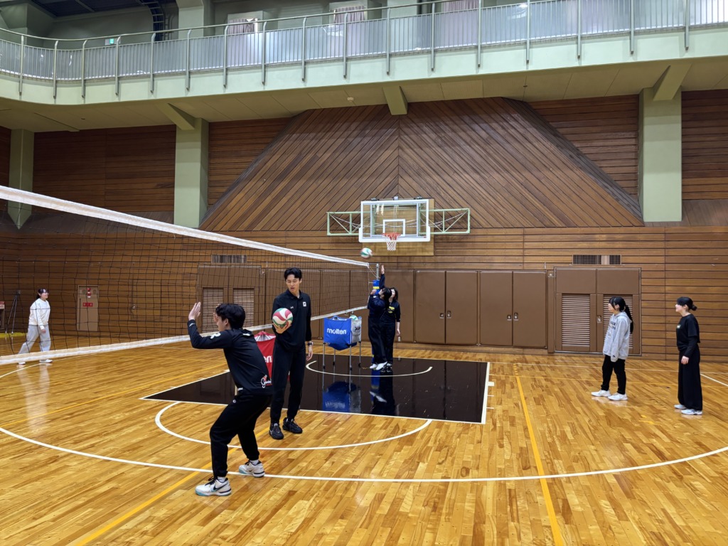 2025.12.19 バレーボールで英語を学ぶ? We played volleyball in training English class. Students practiced spiking and blocking.The 2nd year students coached well and everyone had fun! 前の記事 記事一覧 次の記事