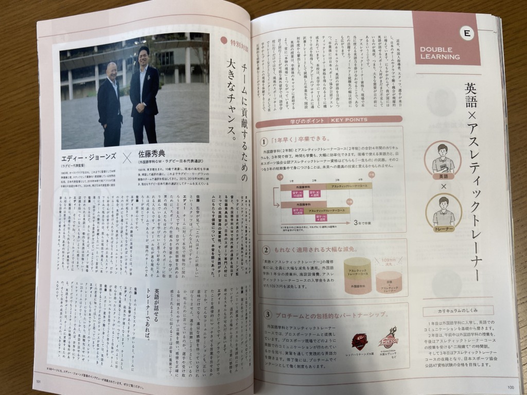 外国語学科のページには、現ラグビー日本代表監督のエディー・ジョーンズさんの特別インタビューが掲載されています。