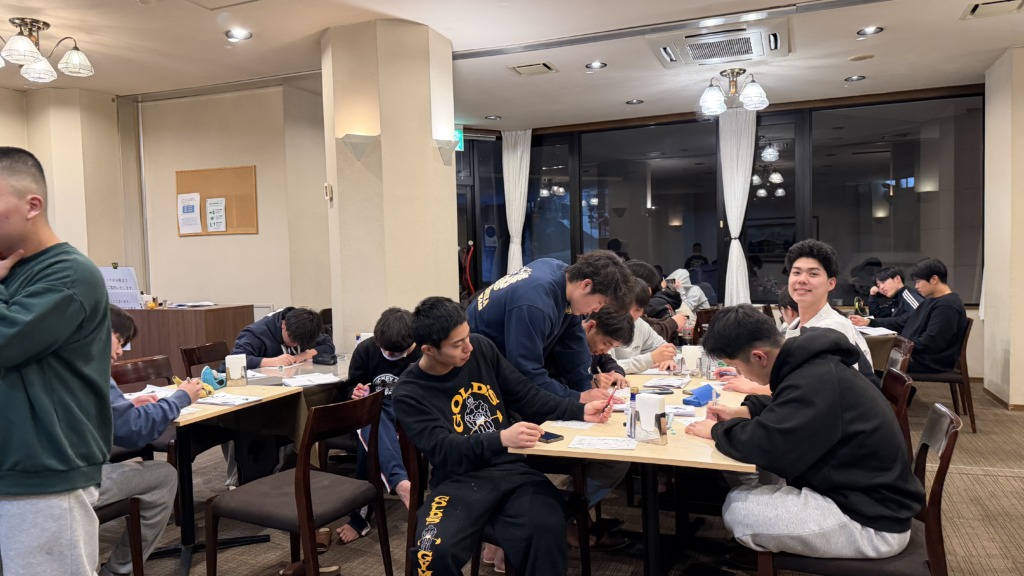夜には、実習ノートの厳しいチェックです。