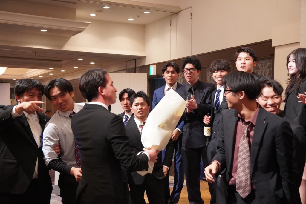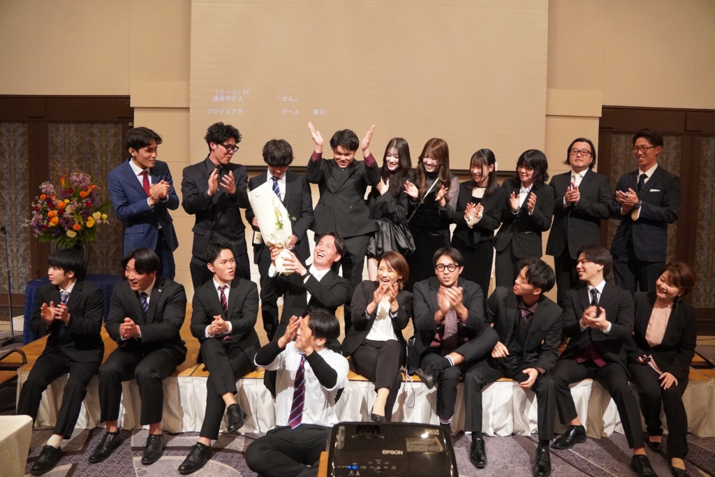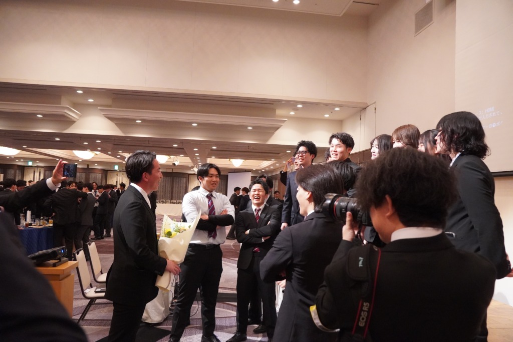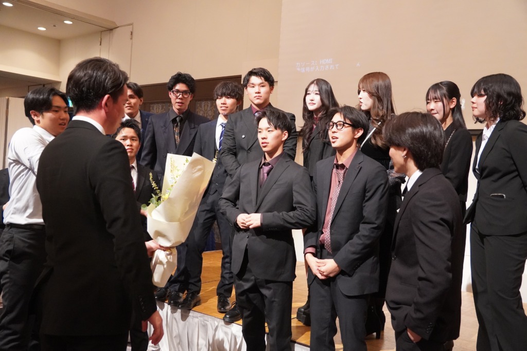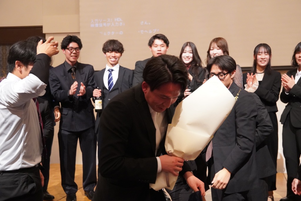 2026.03.14 謝恩会 ~サプライズの瞬間~ 『みんなで写真を撮りましょ。先生たち前にどうぞ。』 言われるがまま前に行った このガチャガチャした感じは、心地いいです。 どんどんみんなが集まってきました! 『尾﨑先生。上見て下さい』と学生が。 こうやってサプライズが決行されたんです。 嬉しいですね! ええんやで ええんやで 泣いても ええんやで! もう一回尾﨑先生の有難い話が始まった。 真剣に聞く学生たち やっぱり、良いクラスです! この後の満面の笑顔でした。 ほんと嬉しいですね 前の記事 記事一覧