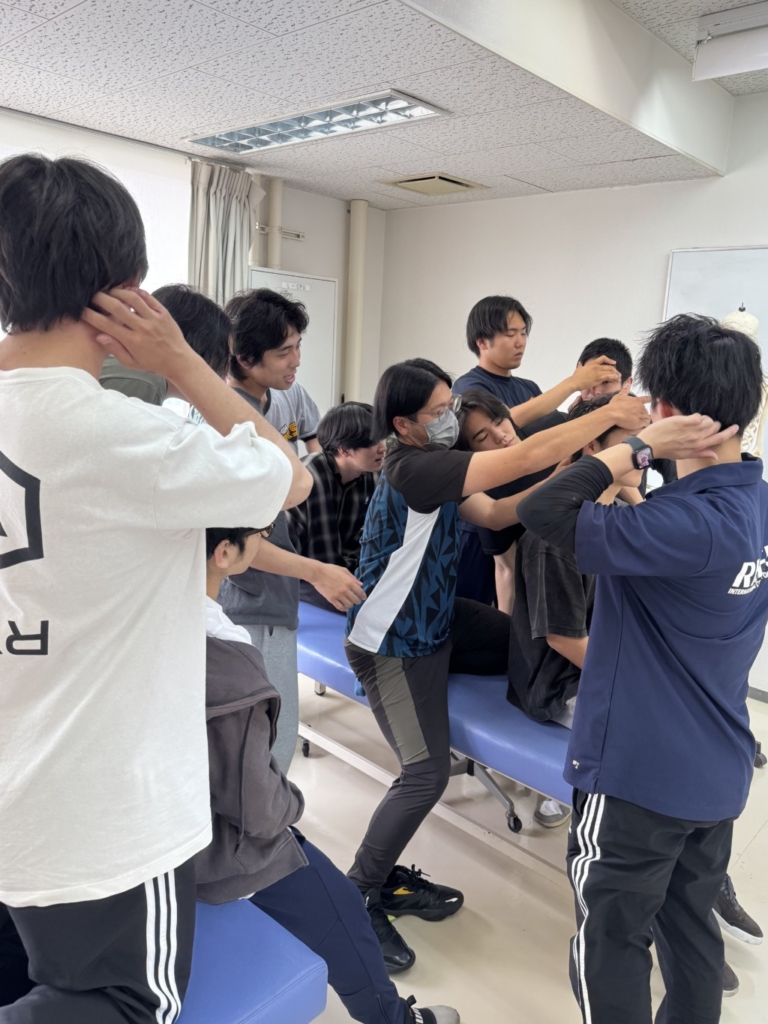 1対大人数の指導なので、スポーツマッサージの授業はありません。