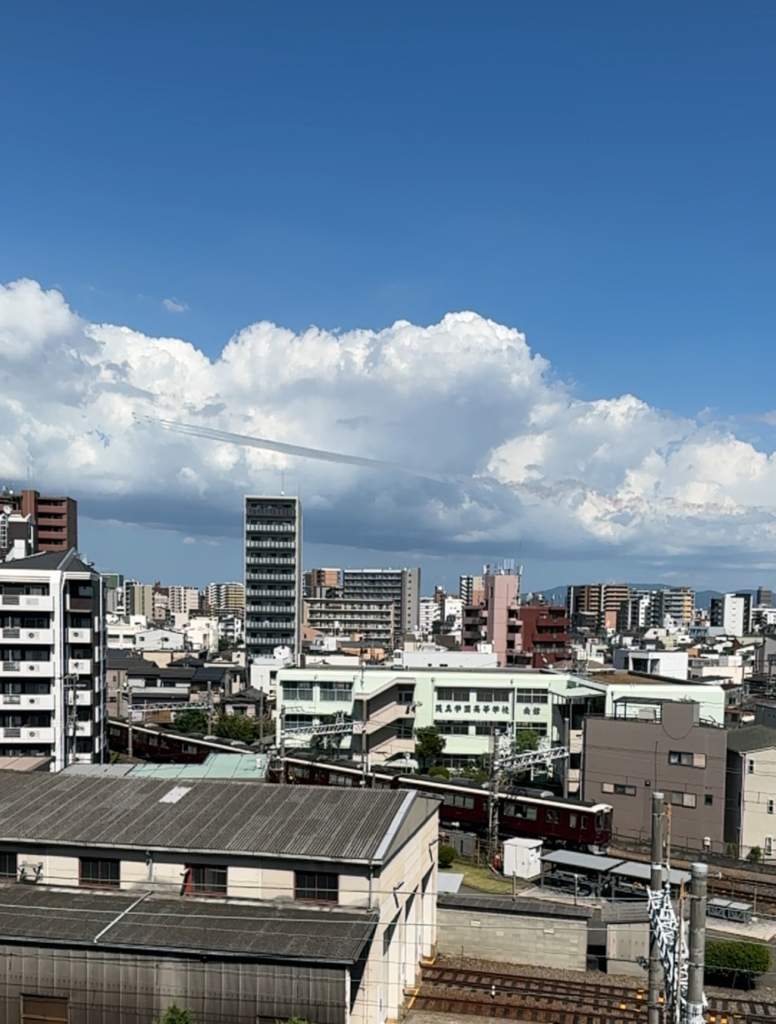 2025.07.14 ブルーインパルス2日目 オープンキャンパス終了して、入試までの間 丁度ブルーインパルス時間でして! 本館の屋上でフェンスに顔を押し付けて見ようとする辻本先生 ちゃんと見れましてん! 阪急電車とブルーインパルスのコラボレーション! 携帯を見ながらや下を向いている大阪の方々が、皆さん空を見上げていました。 ブルーインパルスが通ったあと、拍手が起こる日本人の温かさを感じました。 ありがとう! ブルーインパルス! 前の記事 記事一覧 次の記事