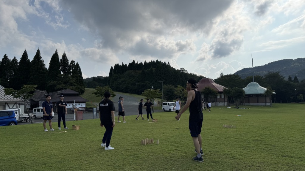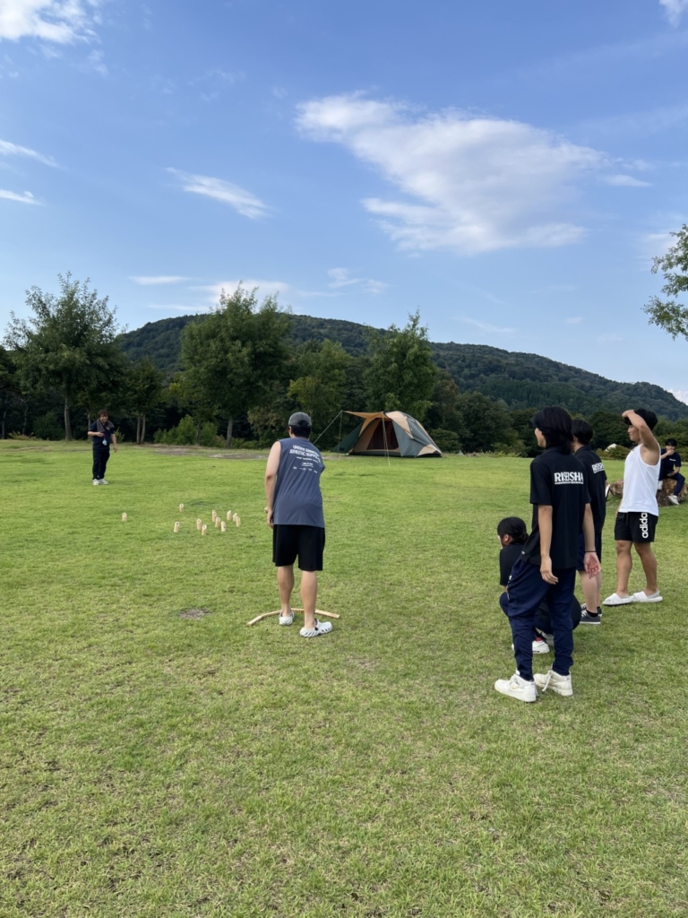 2025.08.27 キャンプ実習 ~モルック対決~ もっとシュールな競技だと思っていました。 12本の木を倒していくモルック パワーとコントロールと頭脳が必要! 練習ではできてたのにー! 想像以上にチームの結束力が高まったモルックでした。 前の記事 記事一覧 次の記事
