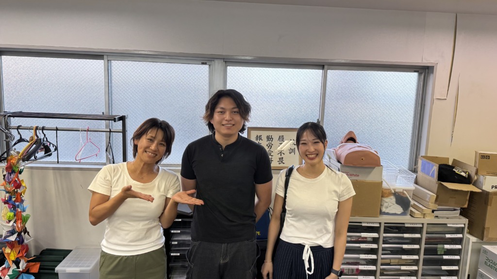 2025.09.04 卒業生来校 今年卒業した武山さんが来てくれました! そして、現在鍼灸学科の砂川君も! 嬉しいですね! 3人で撮った写真も 尾﨑先生が邪魔やったとかではないですよ(笑) 一応担任していたので♡ 水入らずで撮ってもらいました。 社会人になってまだ半年弱。 今一番しんどい時やけど、頑張れ! ずっと応援してますよー!卒業生の皆様。 砂川君は、早く美容鍼をマスターして、やって欲しいものです。 前の記事 記事一覧 次の記事
