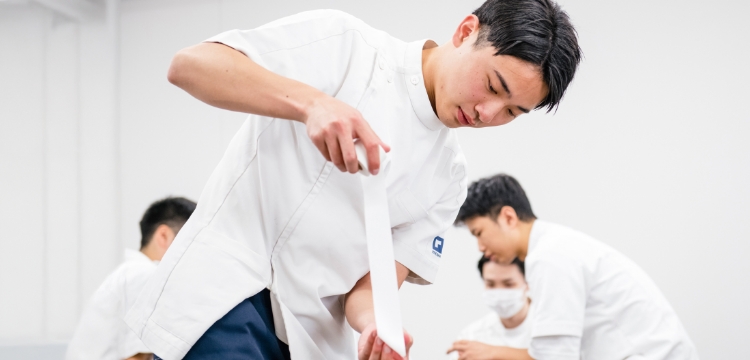 学生は、医療、スポーツ、介護予防の3つの分野に応用できる理論・実技を、基礎から応用まで徹底的に学びます。在学中に国内での多種多様な実習・見学をはじめ、本場の技術を体感する海外研修プログラム(希望者のみ)を通じて経験を積むことで、多職種連携を理解し、卒業後は即戦力として社会に飛び出します。